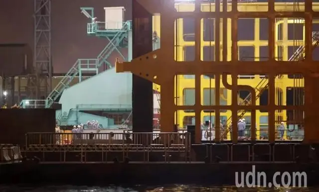 据悉,台湾中信八号大型浮坞日前已正式停靠台船海昌厂前码头,22日深夜时分现场有数十名台船人员连夜进行吊挂工程,准备让“海鲲号”潜舰安放顺利下水,预计下周完工后开始进行移泊作业,接续会实施海测(SAT)。