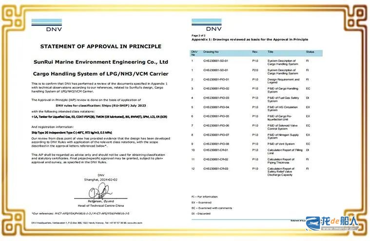 在认证期间,船级社专家重点对货物集管单元、货物存储单元、甲板罐单元、增压单元、BOG液化处理单元、货物转移监测系统、安保系统及控制系统进行了技术原理审核,最终确认青岛双瑞开发的CHS完全符合船级社规范要求。