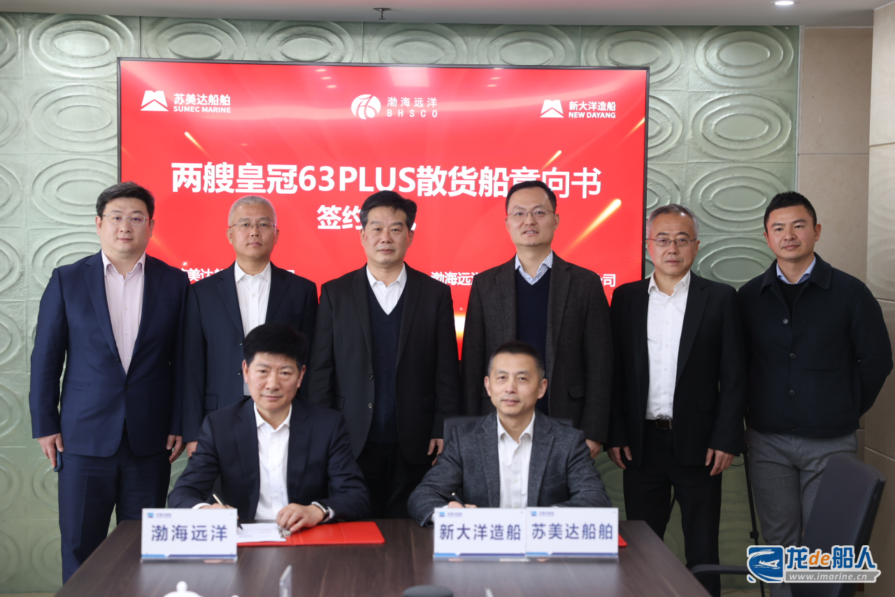 近日,苏美达船舶有限公司与建信金融租赁有限公司(以下简称:建信金租)签订2艘皇冠63 PLUS散货船建造合同。在此次签约的同时,苏美达船舶和渤海远洋又续签2艘皇冠63 PLUS散货船的合作意向书。