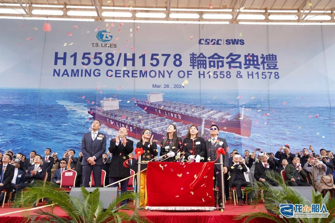3月26日,由中国船舶集团旗下上海外高桥造船有限公司为德翔海运(T.S.LINES)建造的首制两艘7000TEU集装箱船“德翔·上海”轮(TS SHANGHAI)、“德翔·基隆”轮(TS KEELUNG)命名。其中,“德翔·上海”轮已于当日签字交付。