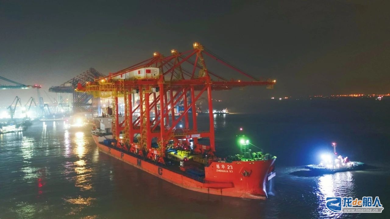 4月10日,“振华23”轮装载着菲律宾项目三台岸桥从振华重工长兴分公司码头出发,驶向菲律宾MICT码头。