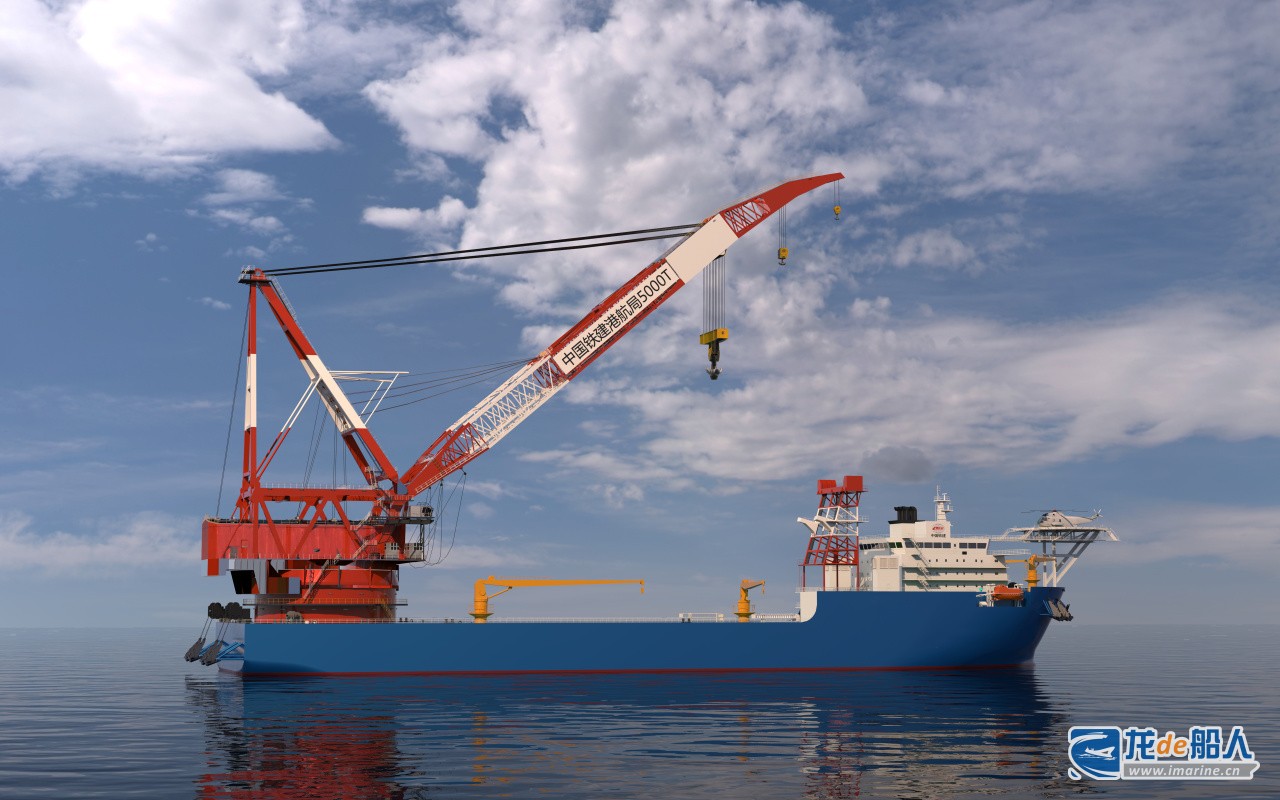 该船设计总长203米,型宽50米,型深18米,最大吃水13米,起重能力可达固定艉吊5000吨、全回转吊3500吨,同时配置先进的DP-2级动力定位系统,是一艘具有大吊重、超吊高且支持无限航区自航功能的大型海洋装备。该船不仅能够满足远海海域13兆瓦及以上风机单桩基础施工、升压站以及大型海上结构物安装,还可参与桥梁建设和救助打捞等水上起重作业,其单钩5000吨起吊能力在国内处于领先水平。