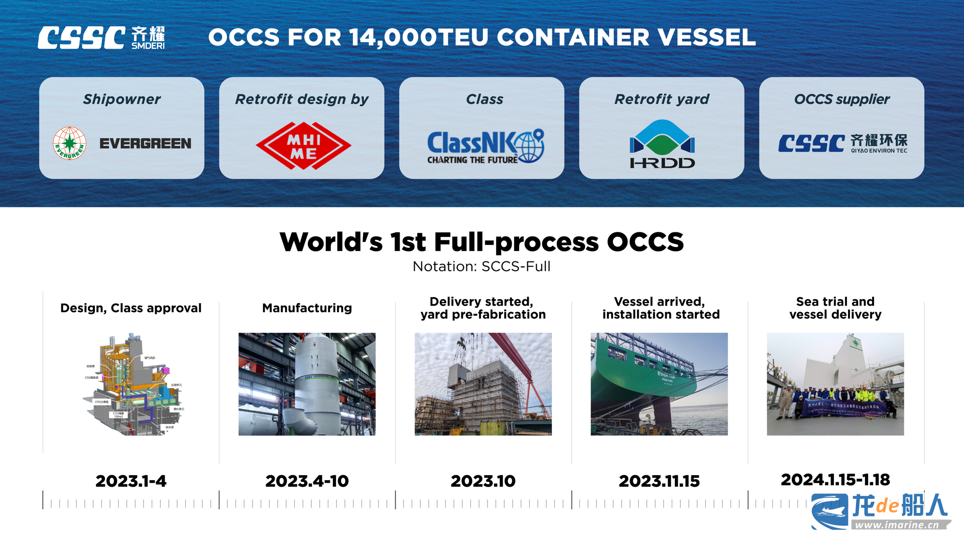2024年4月底,“长顶轮”将在上海洋山港进行全球首次C型罐二氧化碳岸端卸载,这标志着齐耀环保OCCS将成功实现全流程零碳排放闭环,是船用碳捕集产业闭环中的里程碑式案例,将有效解决船东对加装碳捕集系统的重要关切。