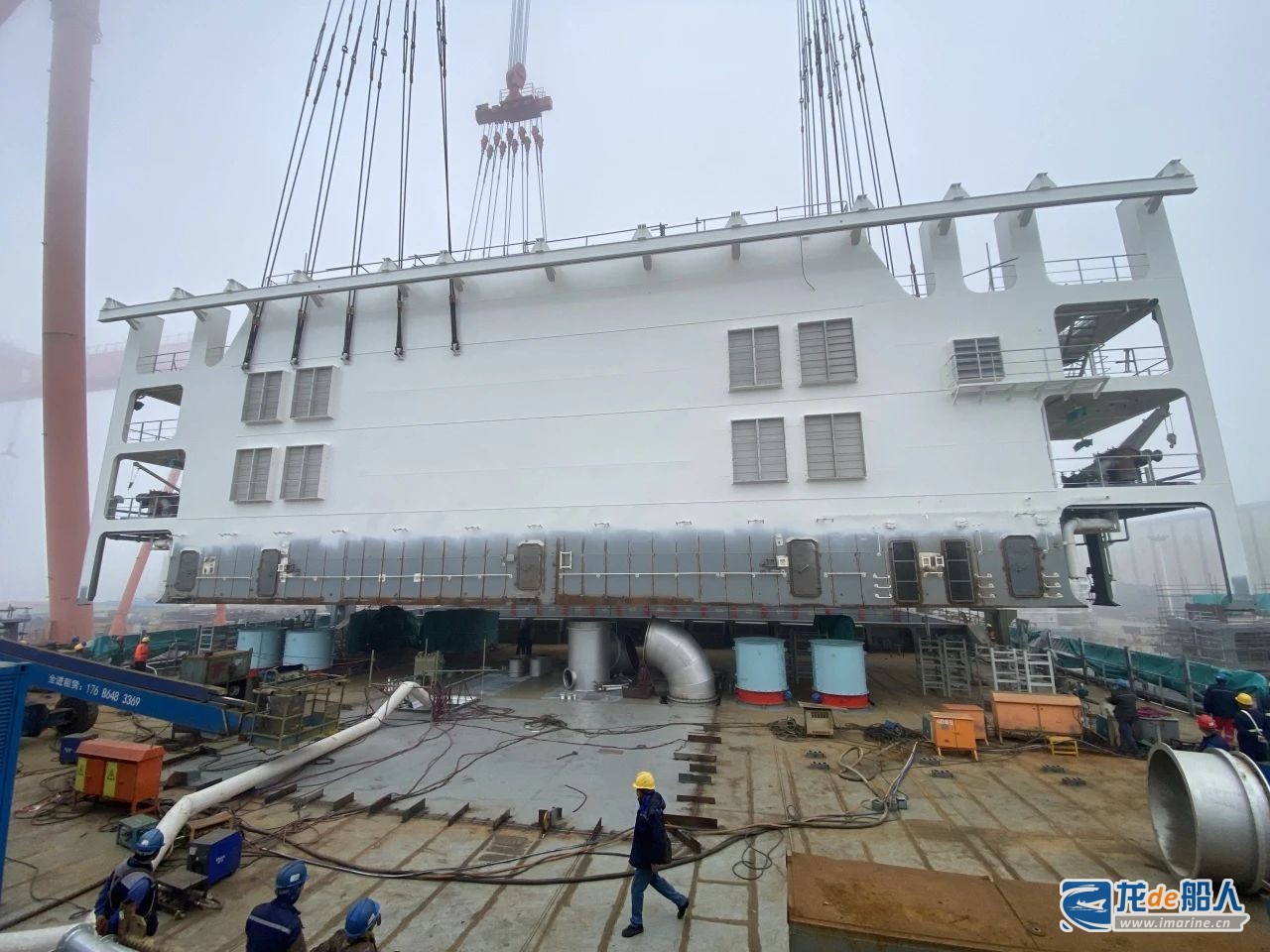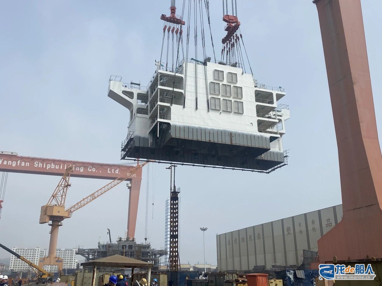 日前,青岛造船厂在建6000TEU集装箱船-05号船上建吊装顺利完成。经前序船建造经验总结和改进工序工法,05号船上建施工完整性进一步提升,有效减少吊装搭载后施工工作量,进一步缩短船舶坞内施工时间。