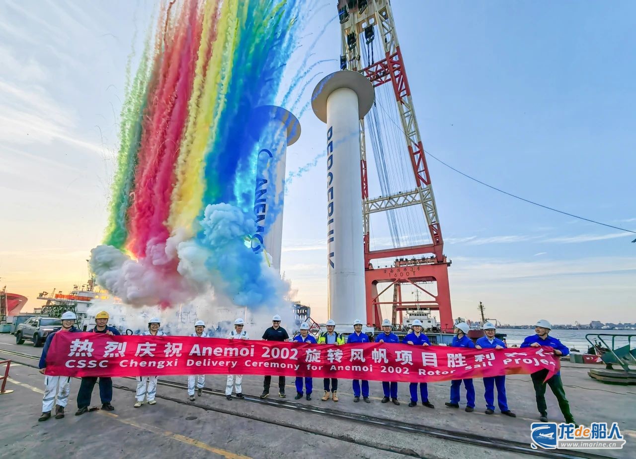 5月1日,中国船舶集团有限公司旗下中船澄西船舶修造有限公司为Anemoi Marine Technologies公司建造的4套35米折叠式船用转子帆成功交付,标志着国内首批35米折叠式船用转子帆成功问世,中船澄西在船舶节能减排、绿色能源开发建造领域再次取得重大成果。