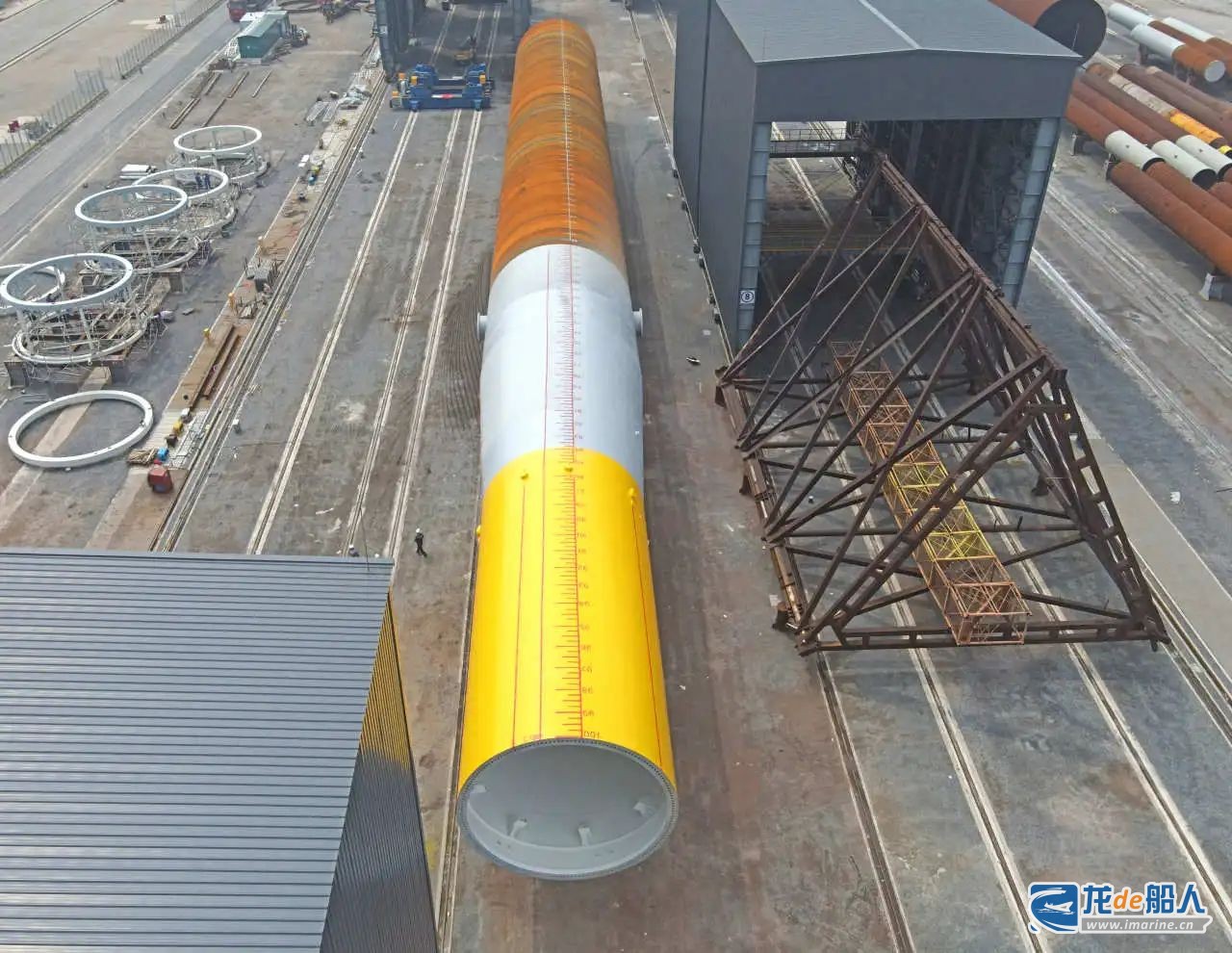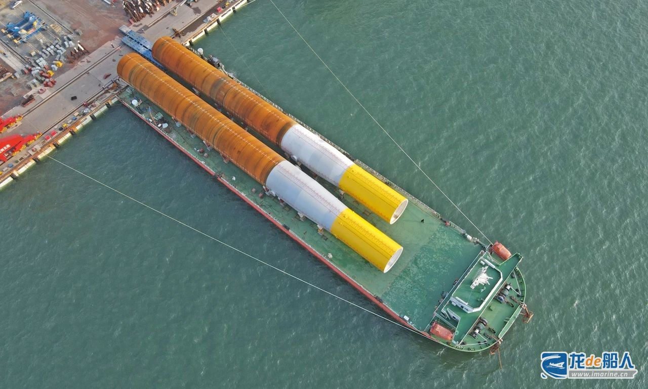 该批次交付的单桩长度108米,外径为9.1米,单体重1900吨,是海南CZ2海上风电示范项目首两根单桩。文船重工承接了该项目22套单桩、套笼的制造、加工及装船运输任务。