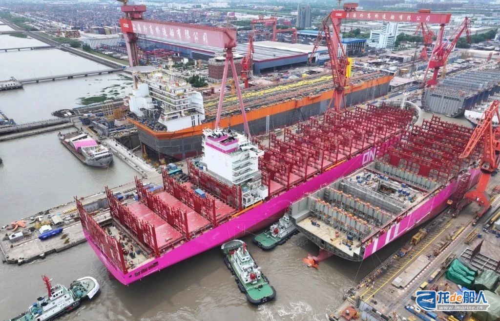 5月22日,外高桥造船为T.S.LINES建造的7000TEU集装箱船系列船第六艘船H1561及为Seaspan Corporation建造的7000TEU集装箱船系列中的第十艘船H1571顺利下坞。