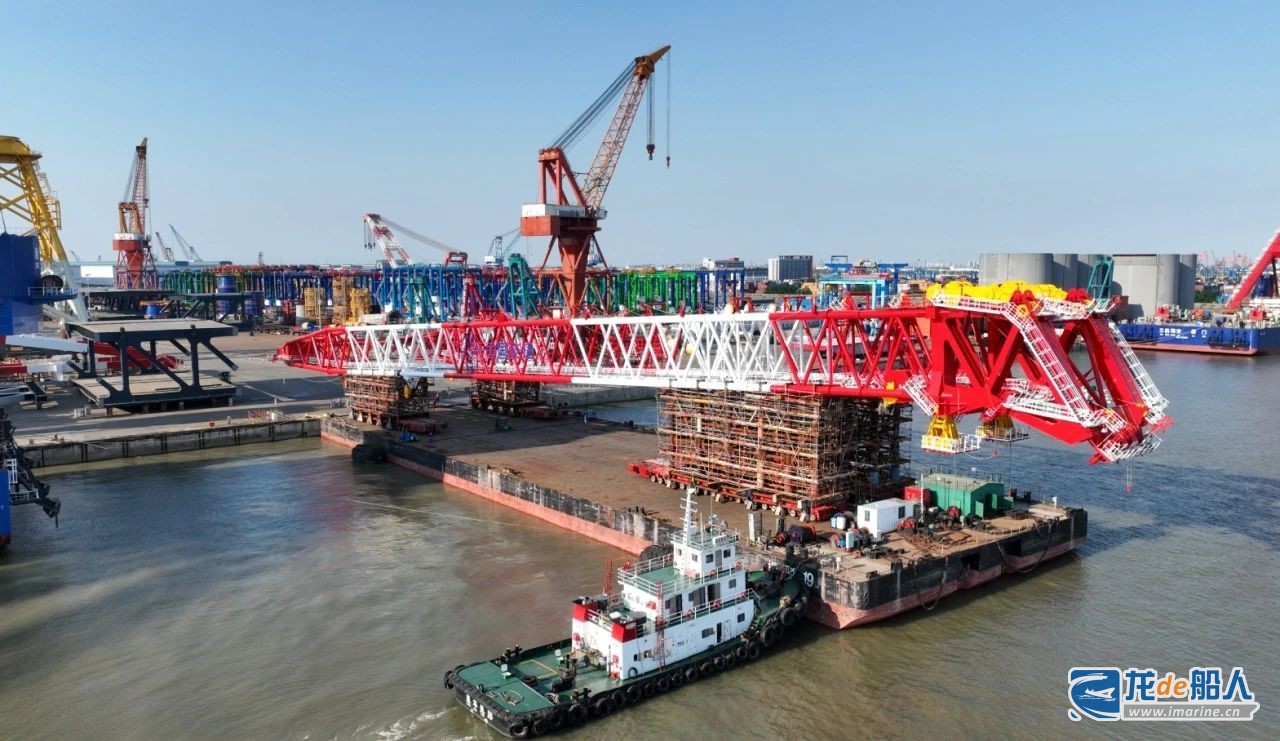 5月28日,南通振华重型装备制造有限公司承建的中交三航局5000T固定扒杆起重机项目臂架顺利过驳,为后续浮态总装打下坚实的基础。
