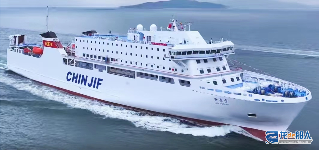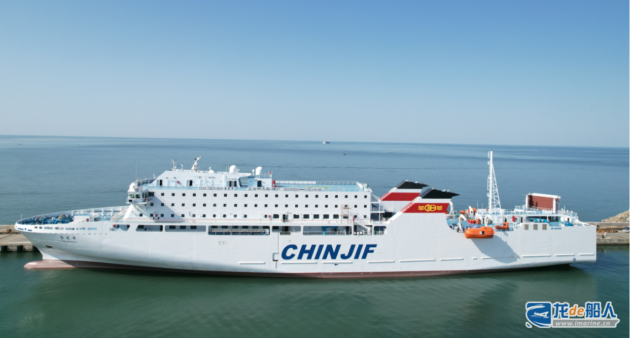 这艘完全由中国船企自主研发设计建造的第三代“鉴真号”,其总长167.2米,型宽25米,载客192人,总吨位约2万吨,设计航速21节,可装载集装箱338TEU(冷藏箱60TEU),入级中国船级社(CCS)。该船于2022年8月签订建造合同,2023年6月上船台铺龙骨,同年11月15日下水,2024年6月将投入运营,成为中日航线上(上海—大阪/神户)最智能先进、最绿色环保的客滚船。