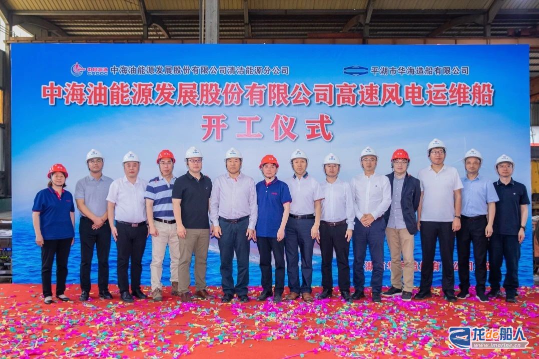 近日,由清洁能源公司投资建造的中国海油首批专业高速风电运维船在浙江省平湖市正式开工建造,标志着该批船舶由设计蓝图正式向实船建造“启航”,该项目正式进入“双轮同造”阶段。