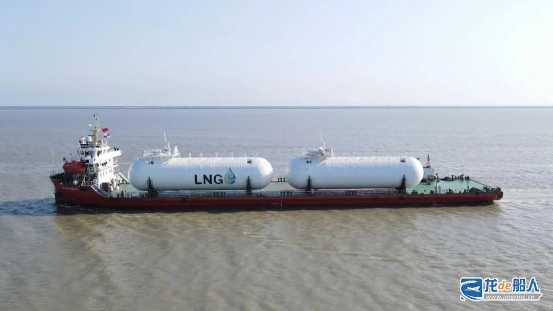此次发运的LNG燃料罐,是日本福冈造船建造的系列4艘26300载重吨双燃料化学品船中的4号船,每个罐体直径为6.38米,总长为30.43米,可装载900方液化天然气。