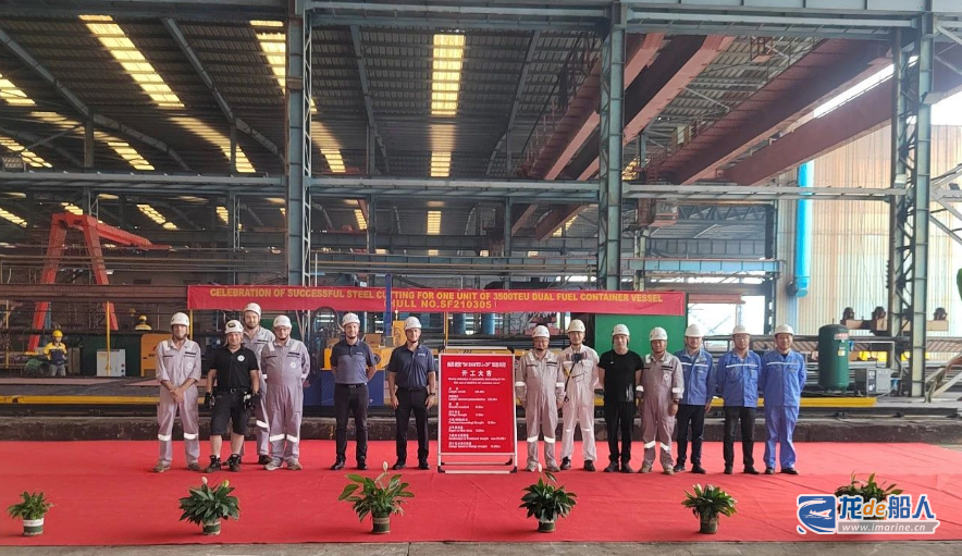 6月20日,泰州三福船舶工程有限公司为德国船东建造的一艘3500TEU双燃料(LNG+MGO)集装箱船举行开工仪式。