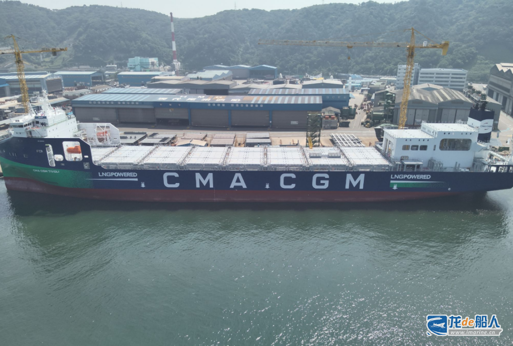 近日,HD现代尾浦为法国航运巨头达飞海运集团(CMA CGM)建造的2000TEU液化天然气(LNG)双燃料动力支线集装箱船“CMA CGM Tivoli”号举行命名和交付仪式。