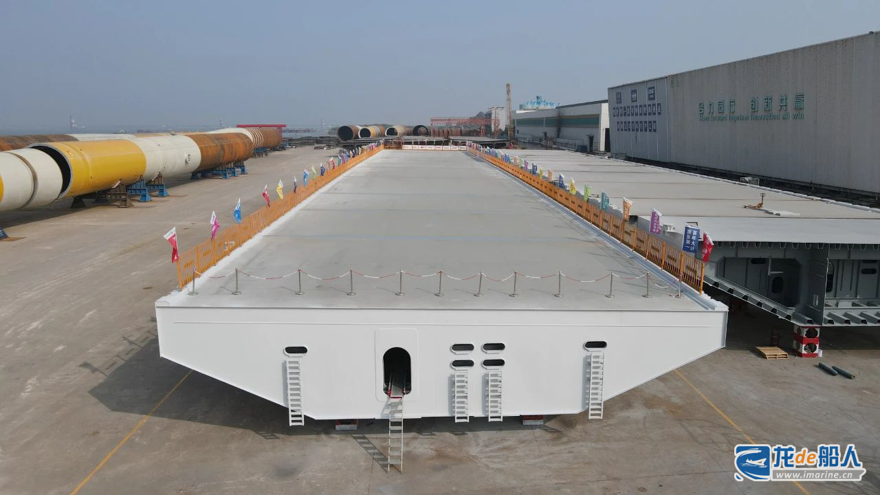 2021年1月5日,首制钢箱梁大节段制造完成顺利出跨,1月27日召开首制大节段验收评审会。