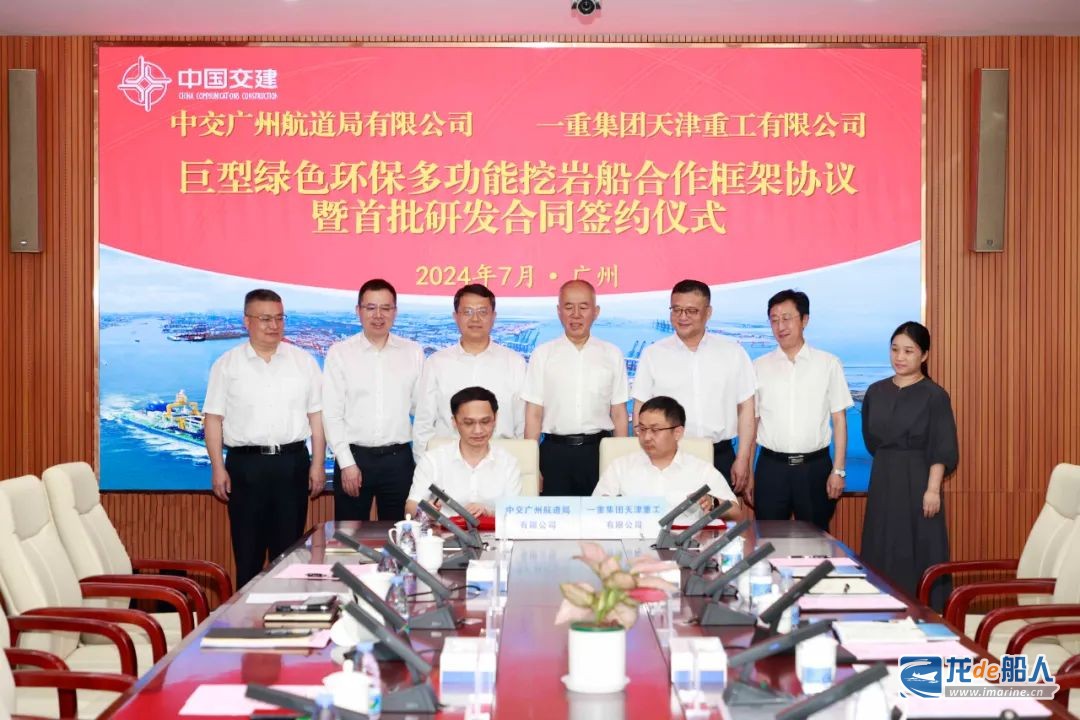中交广航党委常委、总工程师陈林与一重天津重工副总经理葛浩代表双方签署了巨型绿色环保多功能挖岩船合作框架协议及首批研发合同。根据协议,双方将在攻克“卡脖子”关键技术、开展前瞻引领性技术合作、共同提升挖泥船研制技术水平等方面开展深度合作。