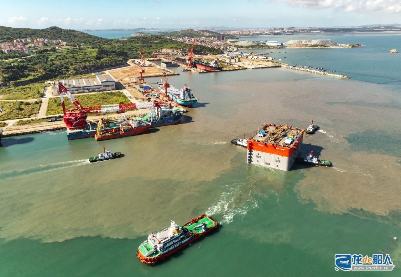 7月4日,泉州船厂为厦金大桥(厦门段)工程建造的首个超大型锚碇钢沉井在5艘大马力拖轮的组合拖带下,驶出泉州船厂2号船坞。