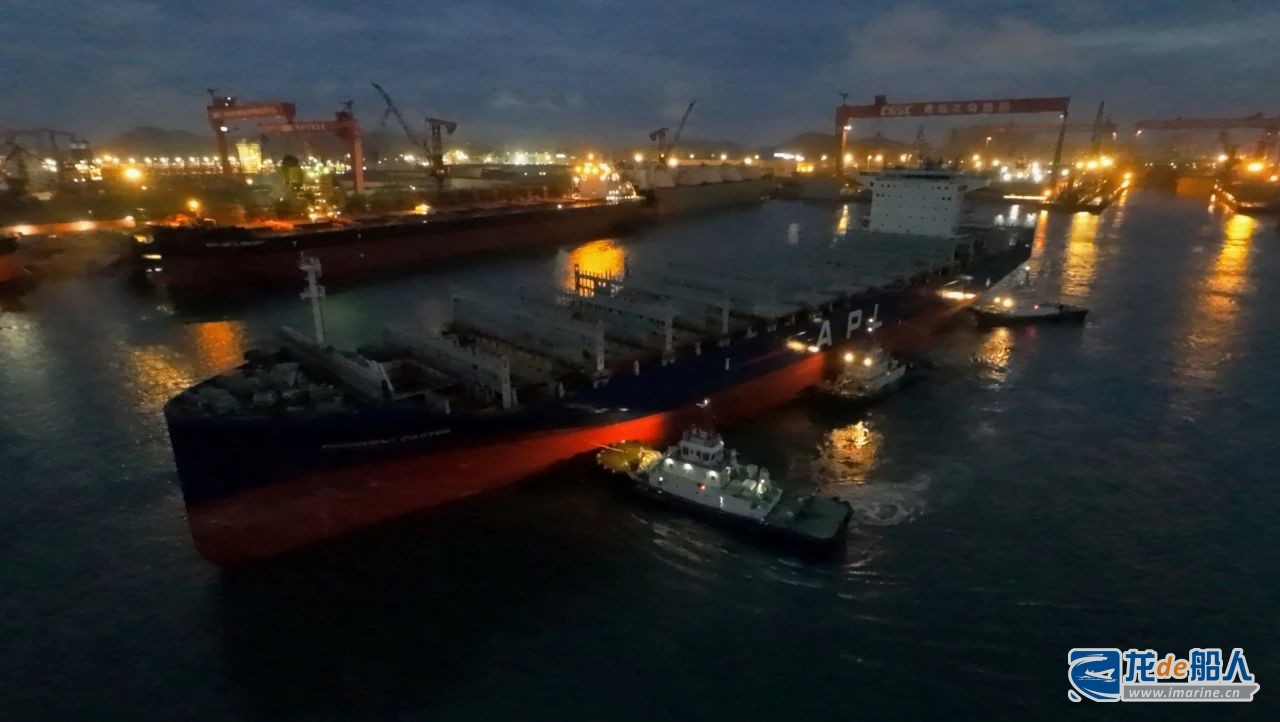据了解,此次出坞船舶系5500TEU集装箱船第7和第8艘船,船舶设计总长255米,型宽40米,型深22米,设计吃水12米,结构吃水14米,设计航速约20节,为单螺旋桨、柴油机驱动、全格栅式的远洋集装箱运输船。