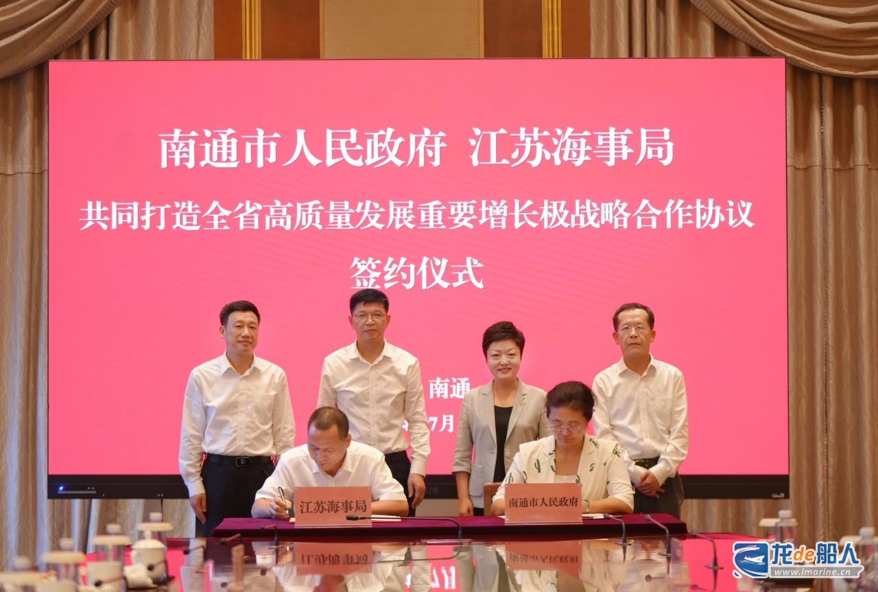 7月25日,江苏海事局与南通市人民政府在通签署《共同打造全省高质量发展重要增长极战略合作协议》。江苏海事局党组书记、局长缪昌文,南通市委副书记、市长张彤出席活动并致辞。江苏海事局党组成员、副局长黄燕品,二级巡视员郑跃峰,南通市人民政府副市长彭大刚、李玲,南通海事局党委书记、局长彭树林参加签约仪式。