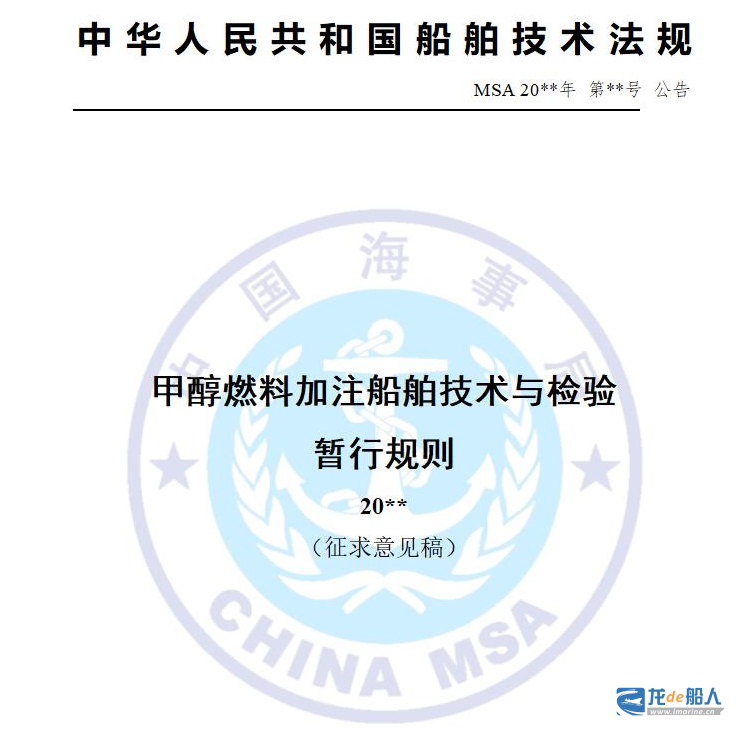据中国海事局消息,为保障甲醇燃料加注船舶安全,促进新能源清洁能源在船舶领域应用,我局组织制定了《甲醇燃料加注船舶技术与检验暂行规则(征求意见稿)》。意见反馈截止时间为2024年8月15日。