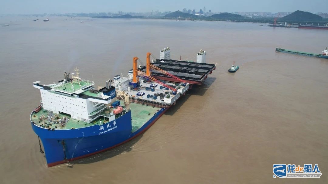 据了解,7月30日“新光华”轮抵达南通狼山联检锚地, 7月31日和8月1日前后完成了6艘驳船、2艘浮吊、2艘拖轮的半潜装船作业,后续经过两天时间的绑扎、系固,该船具备了开航条件。