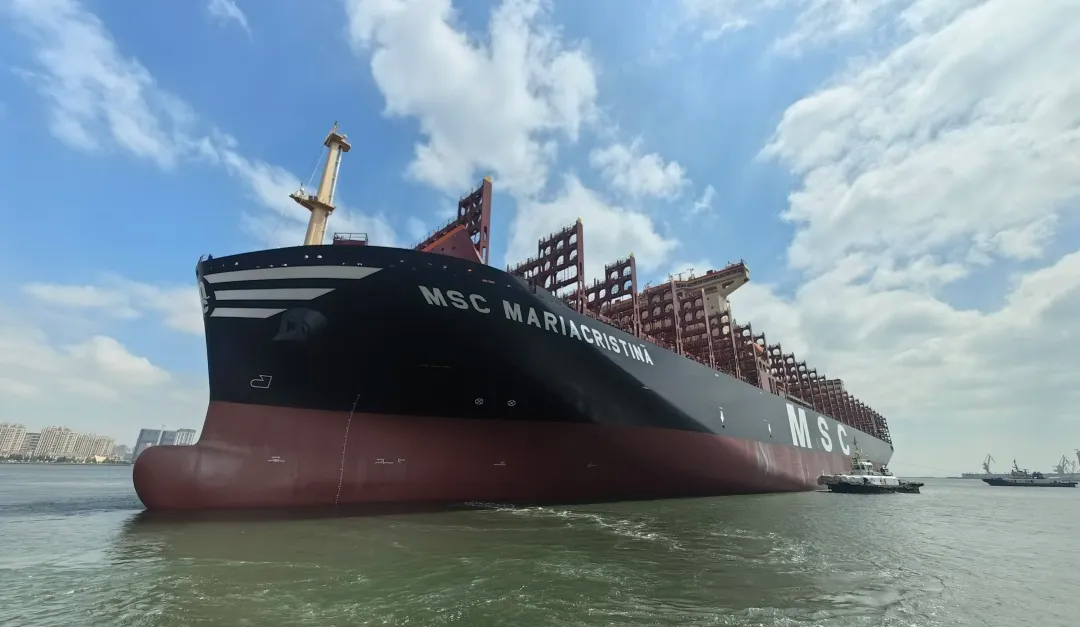 据了解,该船总长约366米,型宽51米,可运载超过16200个标准集装箱,是一型绿色环保、高效节能的大型集装箱船。采用WinGD双燃料主机并配置iCER-Diesel绿色节能系统,搭载双燃料发电机和双燃料辅锅炉,安装空气润滑减阻、大功率轴带发电机、桨前节能导轮等减碳节能装备,完全满足最新环保排放标准,最大限度提高能源效率和经济性。