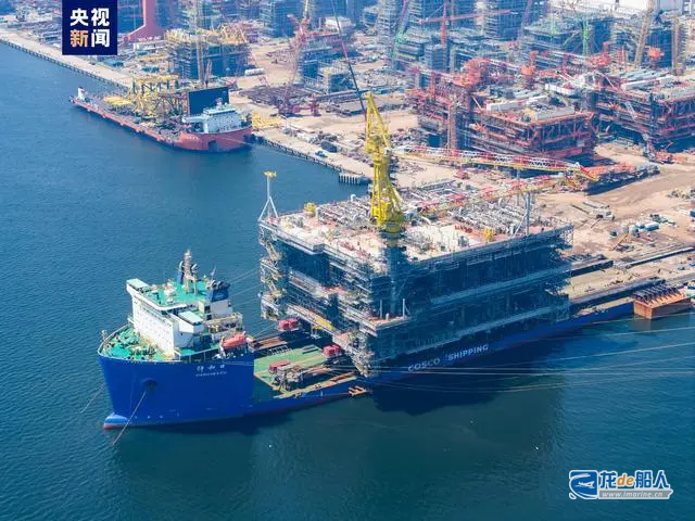 据了解,这是目前在建国际上最大的油气集输平台。经过34个月的施工建造,今天(8月12日)正式交付,月底将搭乘大型运输船,启程前往6400海里以外的海域进行安装。