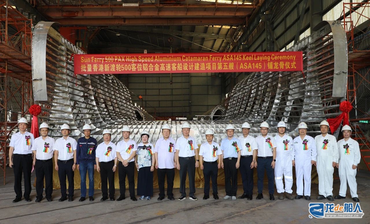 8月9日,英辉南方迎来了批量新渡轮500客位铝合金高速客船设计建造项目第五、第六艘船铺龙骨的重要节点。