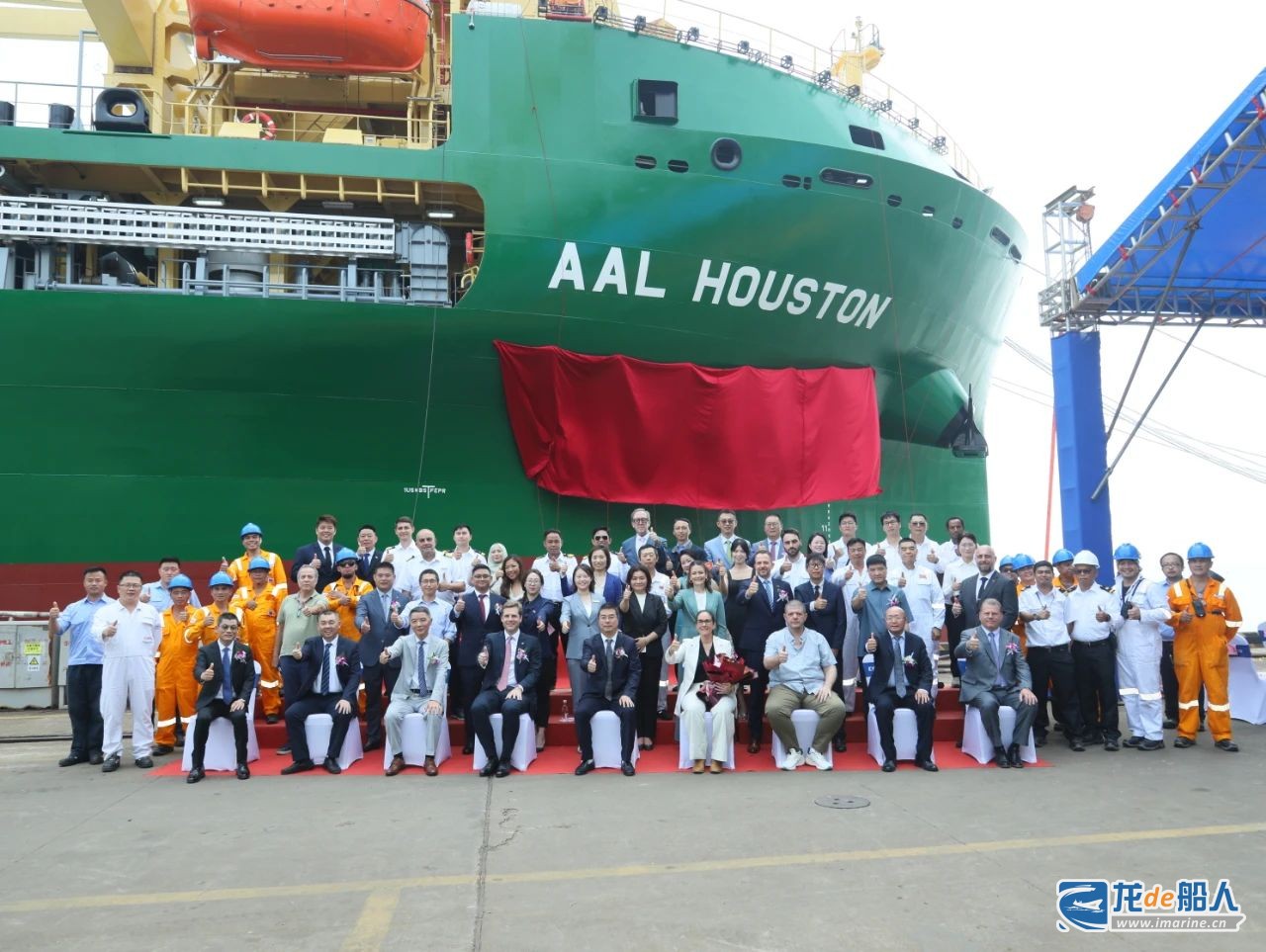 据了解,在“AAL HOUSTON”号建造期间,项目组结合建造经验,刷新数项纪录。与前两船相比,该船出坞评分更高、码头周期更短、试航后船东与船检的意见更少,并在试航前完成了克令吊负重实验、焊缝探伤、主甲板舱盖舾装件焊后报验、舱盖密试等工作,实现了交船前全船油漆,以完工状态报验,达成了批量船建造“一艘比一艘快 一艘比一艘好”的目标。