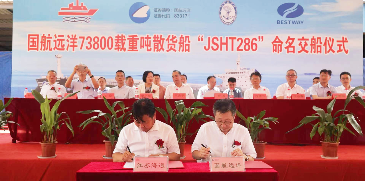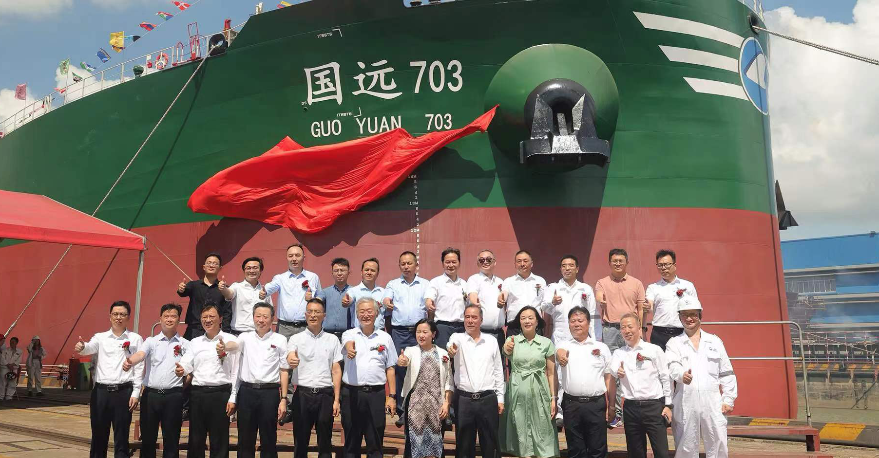 9月15日,国航远洋新造首艘内外贸兼营的73800DWT甲醇双燃料预留散货船“国远703”轮在江苏南通举行交付仪式。