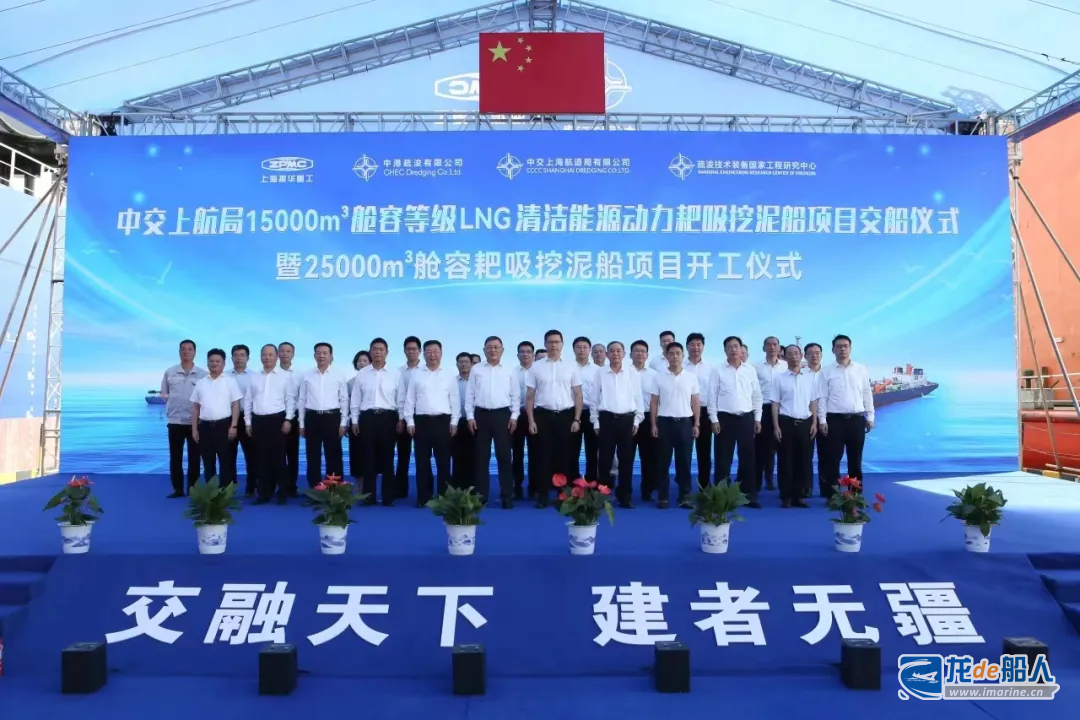9月19日,国内首艘LNG双燃料动力耙吸式挖泥船“新海鲟”轮交付仪式暨25000方超大型耙吸式挖泥船开工仪式在振华启东海工顺利举行。