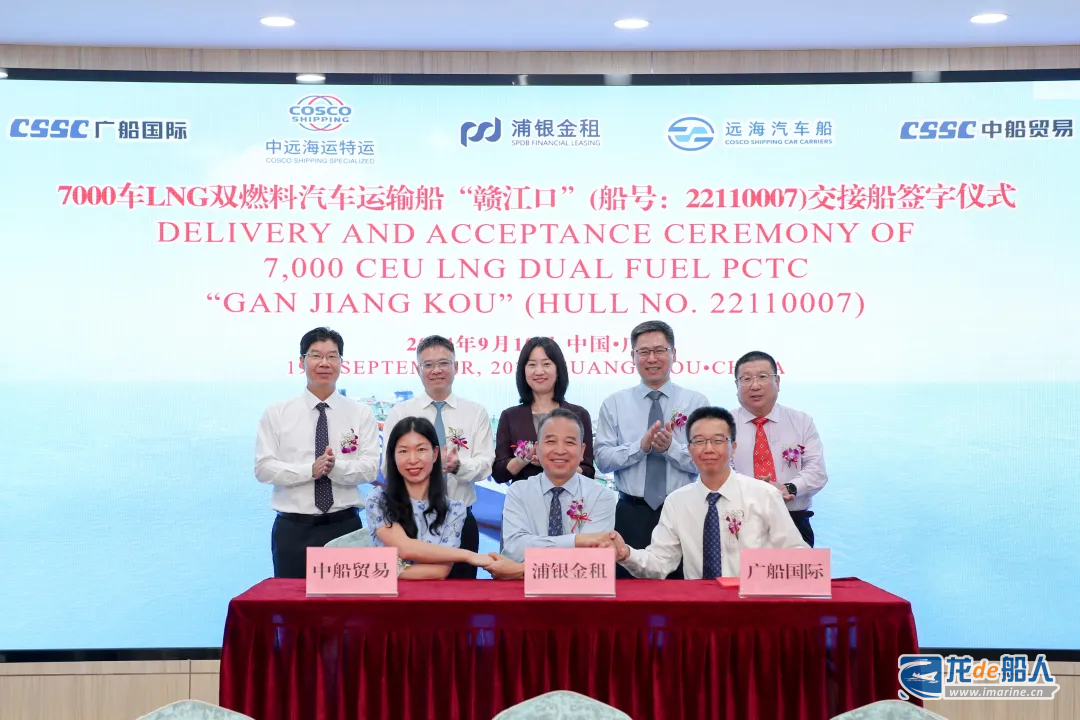 9月19日,中国船舶集团旗下广船国际联合中船贸易为浦银金租建造的7000车LNG双燃料汽车运输船2号船举行命名交船仪式,这是广船国际继9月5日交付1艘同类型船之后,时隔15天再次交付1艘新船。