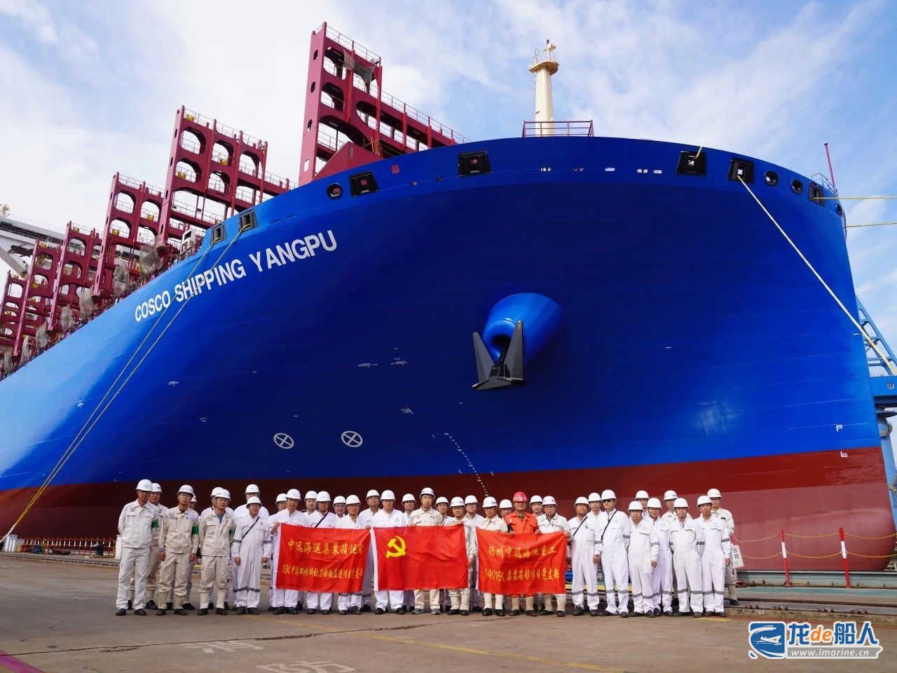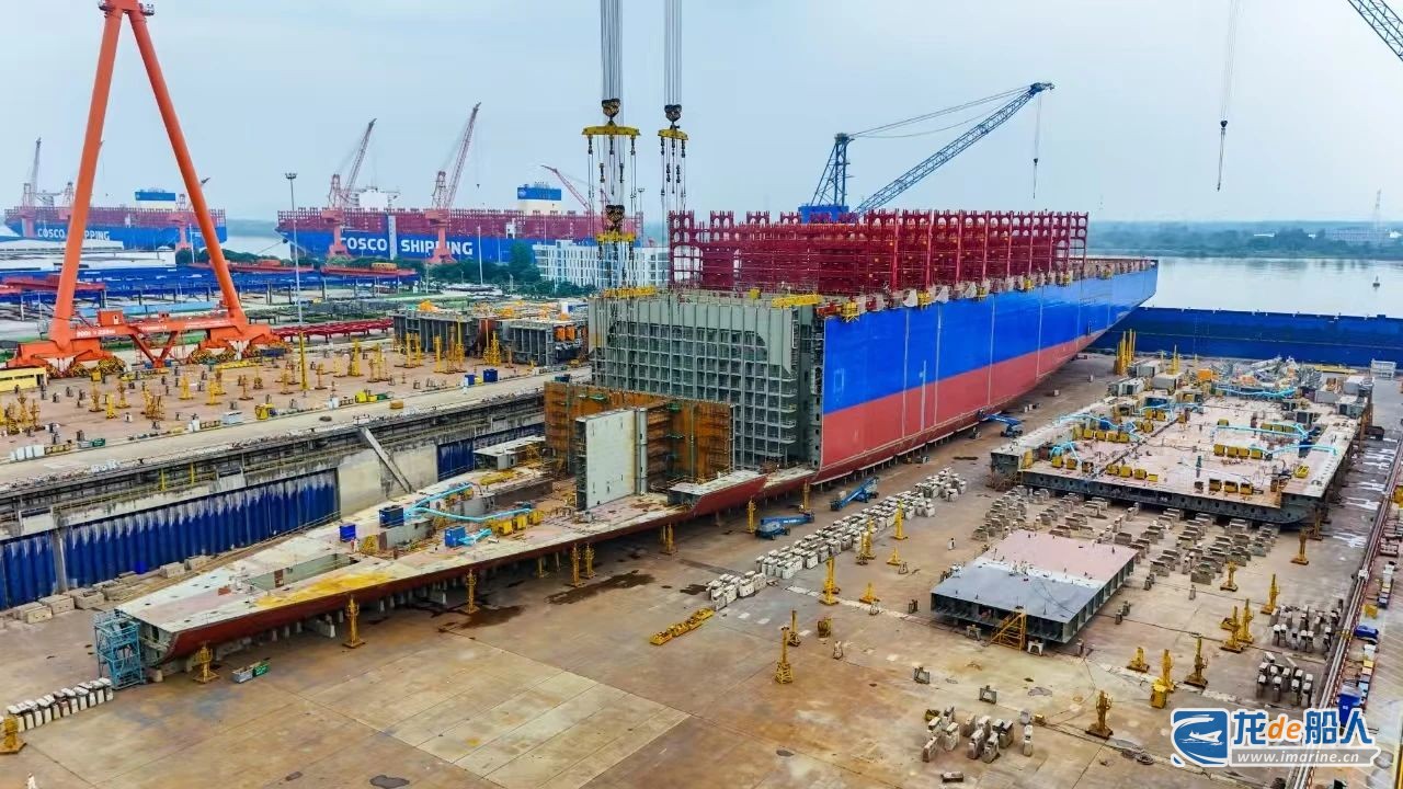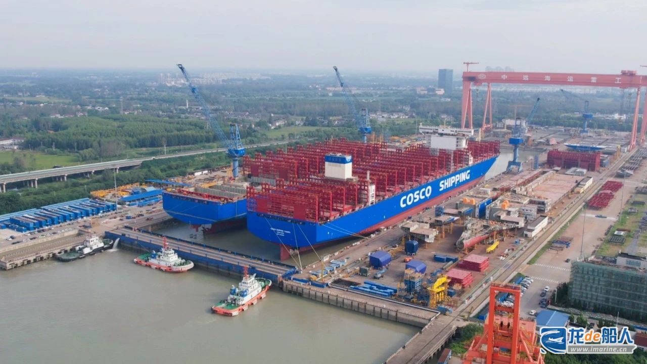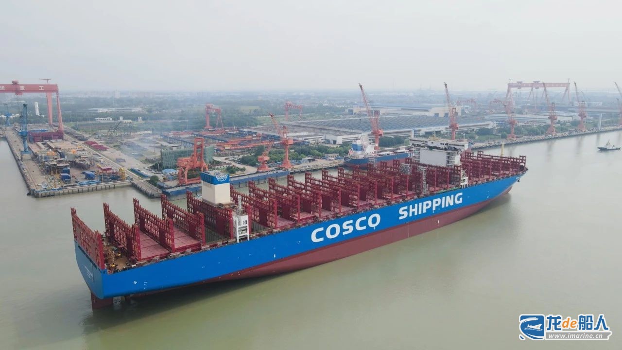 9月25日,扬州中远海运重工承建中远海运集运的首制16000TEU系列甲醇双燃料集装箱船N1071完成154次坞内吊装作业后,在拖轮牵引下靠泊在该公司三号码头,顺利完成下水出坞。