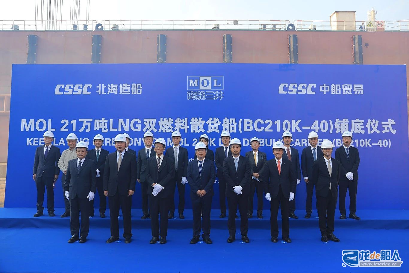 - 21万吨双燃料散货船40号船铺底仪式