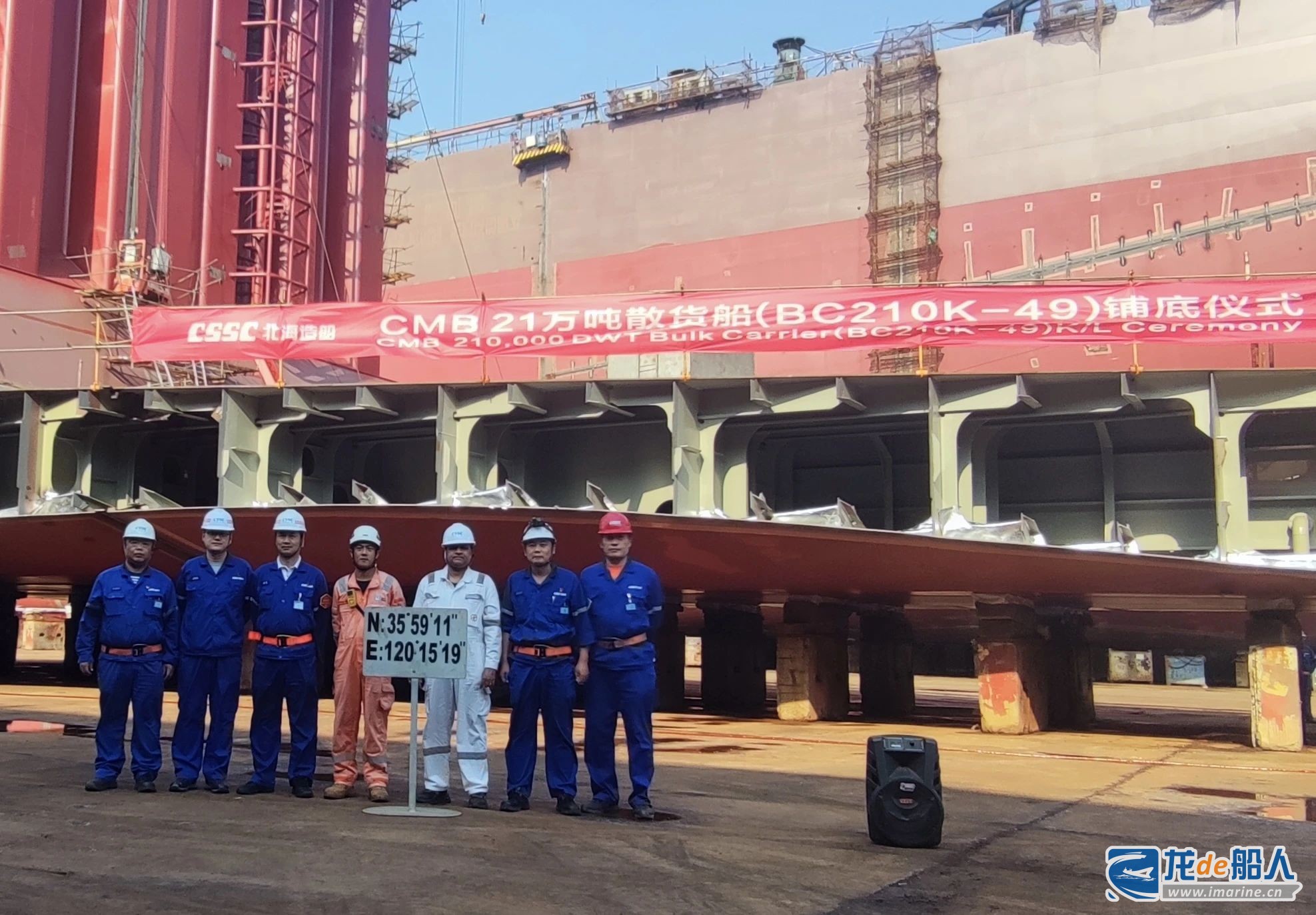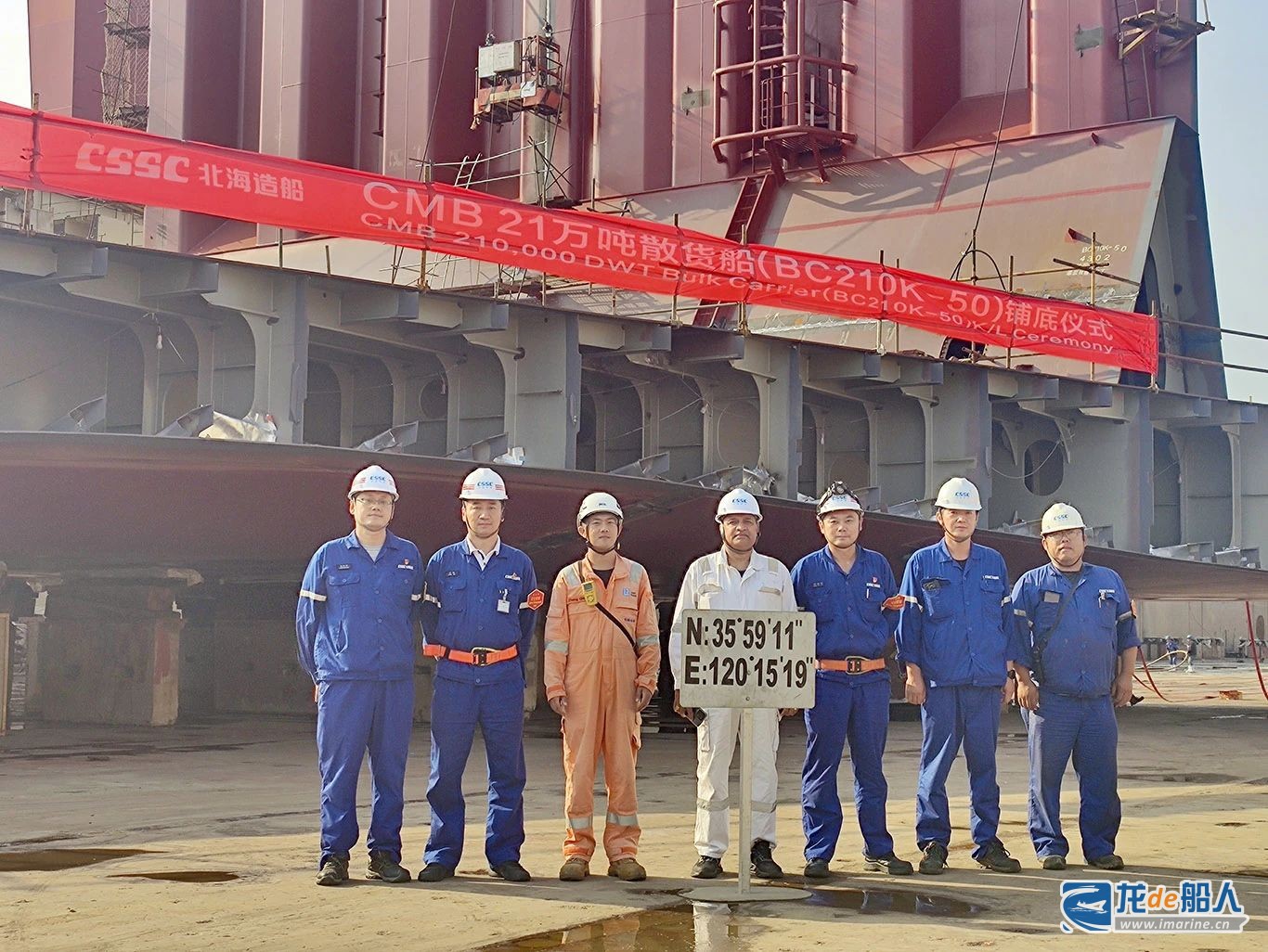 CMB公司船东驻场组、船级社及北海造船相关部门代表共同参加铺底仪式。