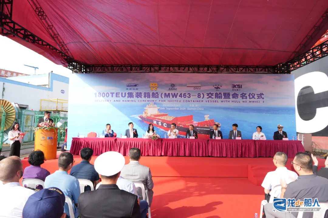 9月26日,厦船重工承建地中海航运公司(以下简称“MSC”)的1800TEU集装箱系列船(MW463-8)顺利签字交付,并举行了隆重的命名仪式,该新船被命名为“MSC KYUNGMIN”。