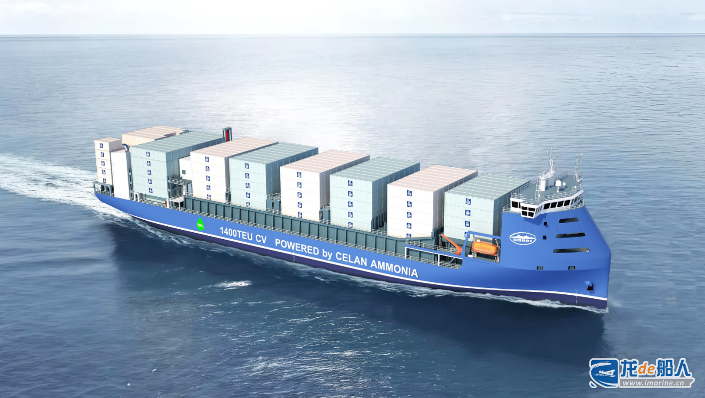 该船型立足于“绿色环保、节能减碳”的设计理念,主要服务于欧洲、亚洲等区域航线。总长约150米,型宽约27米,可装载约1400个20英尺标准集装箱,配备氨燃料发动机、氨燃料储罐、供给系统和加注系统,其船舶能效设计指数低于基线约45%,远远满足国际海事组织(IMO)第三阶段的减排要求,且船舶营运碳强度(CII)评级A级(最优级),每年可减少二氧化碳(CO2)排放约1万吨。