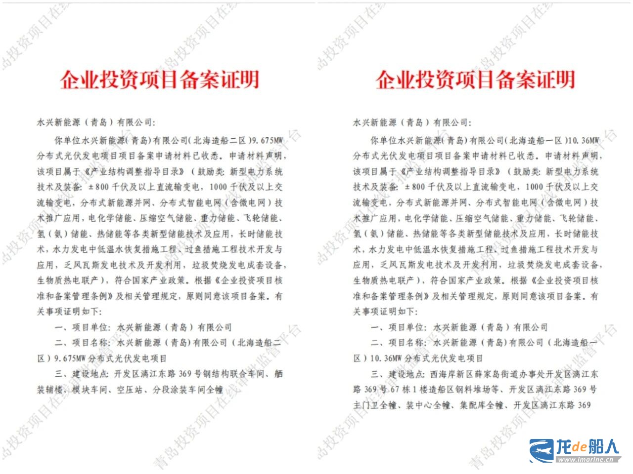 近日,水发绿色能源股份有限公司北海造船分布式光伏发电项目顺利取得企业投资项目备案证明。