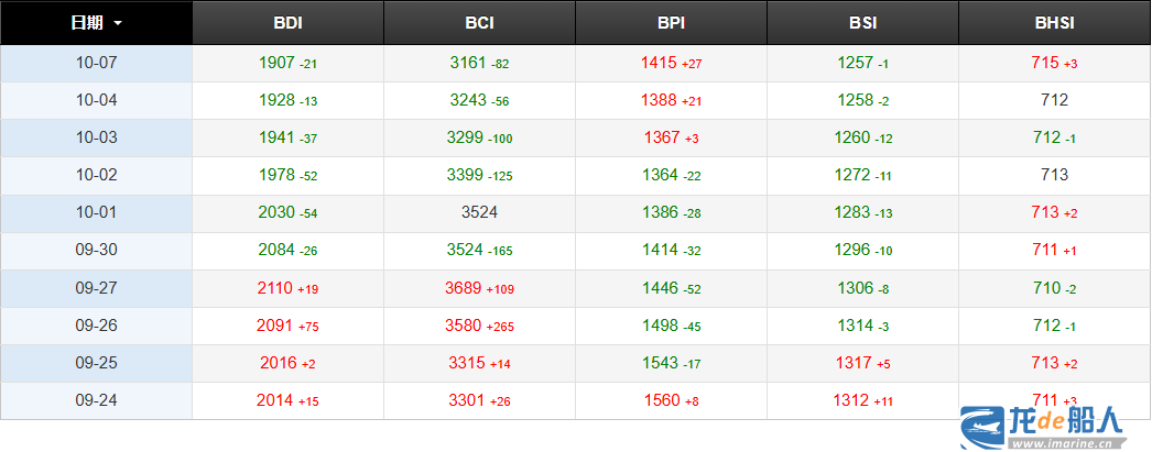 10月7日,波罗的海干散货指数(BDI)报1907点,创9月18日以来新低水平,较前值下跌21点,或1.09%,创10月3日以来最大跌幅,且为连续第6天下跌。