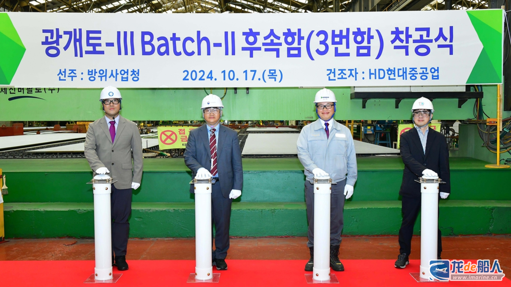 10月17日,HD现代重工在其位于蔚山的总部举行了新一代宙斯盾驱逐舰3号舰的开工仪式。