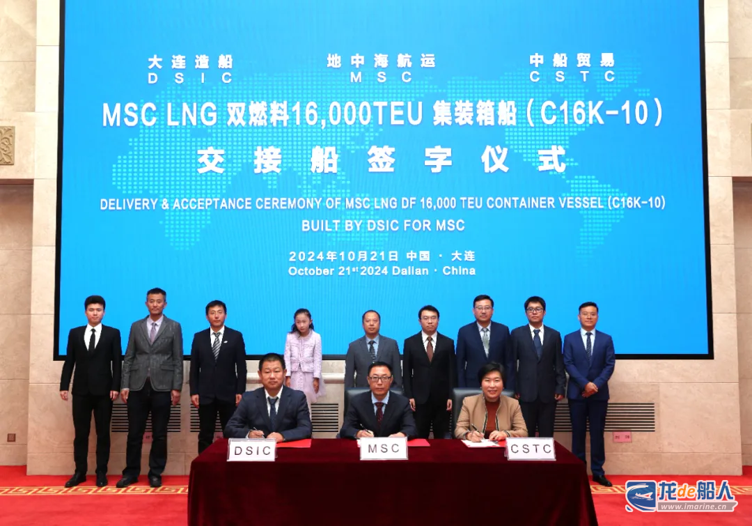 10月21日,中国船舶大连造船联合中船贸易为MSC地中海航运建造的、配备全球最大B型LNG燃料舱16000TEU集装箱船“玛利亚克里斯蒂娜”轮交付。