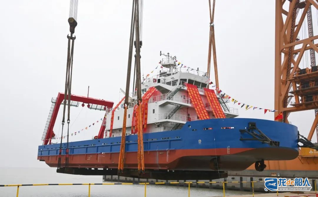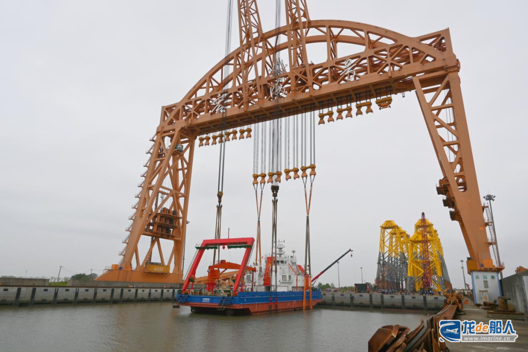 据了解,传统船舶下水方式往往依赖复杂的滑道或浮船坞,不仅耗费时间和人力,还存在一定安全风险。而此次吊装作业创新性地采用船舶整体吊装下水技术,颠覆了传统模式。其中,关键设备“宏海号”龙门吊发挥了巨大作用,它凭借精密的计算机模拟设计、高强度的吊装设备以及专业的施工团队,实现了整船陆地建造完成后一次性目标水域吊装作业,整个过程平稳、高效,大幅缩短了建造周期。