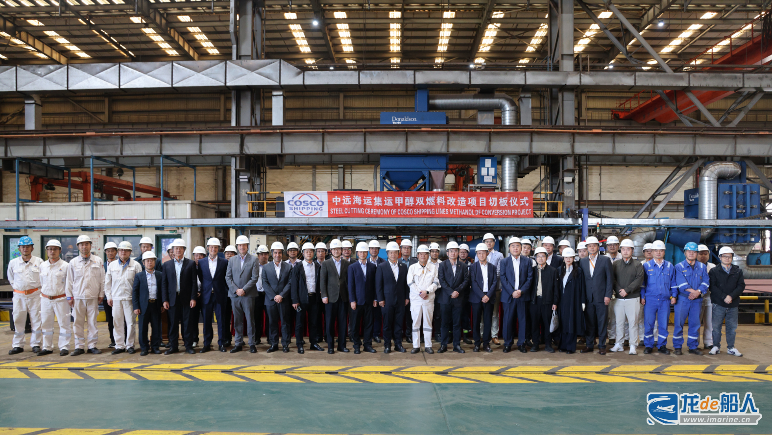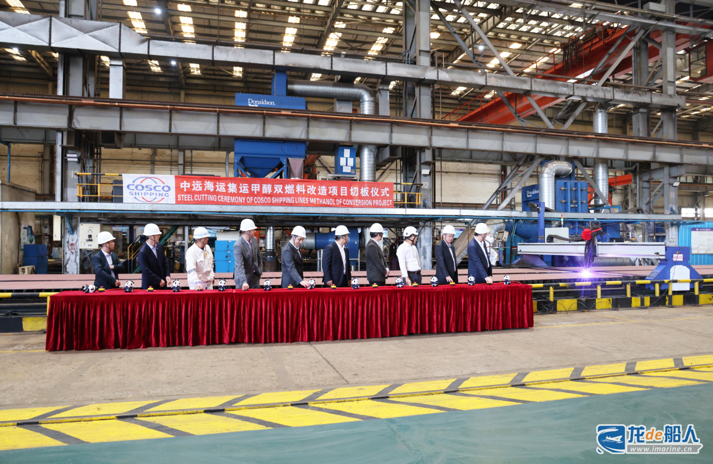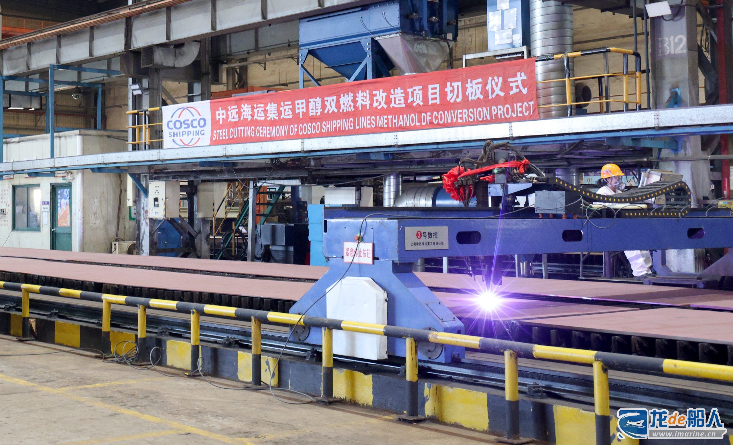 10月23日下午,全球首例主、副机同时改造大型集装箱船舶甲醇双燃料改造EPCIC船厂总包项目在上海中远海运重工有限公司(上海中远海运重工)切板开工。