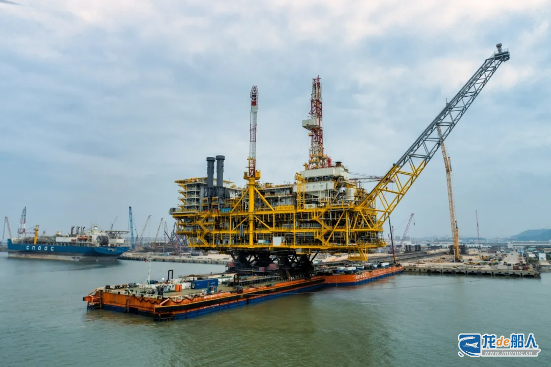 目前,该上部组块已完成装船固定作业,启航前往文昌油田群所在海域。