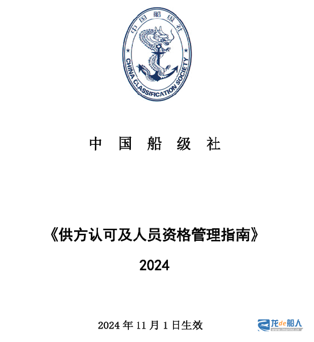 近日,中国船级社(CCS)发布了《供方认可及人员资格管理指南》(2024),该指南于2024年11月1日生效。