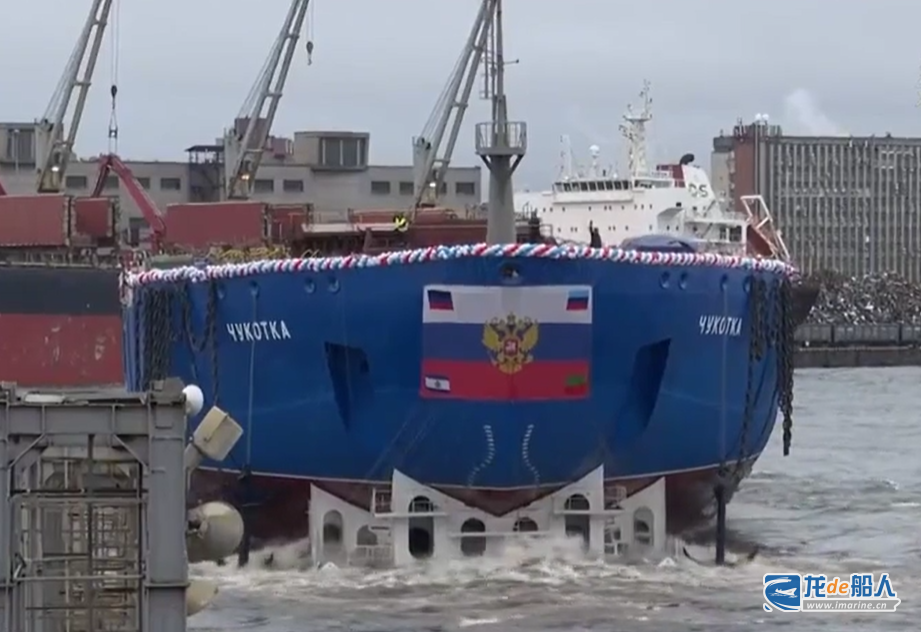 据俄罗斯总统网站消息,当天,俄总统普京在莫斯科通过视频连线下达“楚科奇”号核动力破冰船下水的命令后,工人们开始拆除阻拦装置。几分钟后,这艘巨轮顺着倾斜的滑道驶入水中。