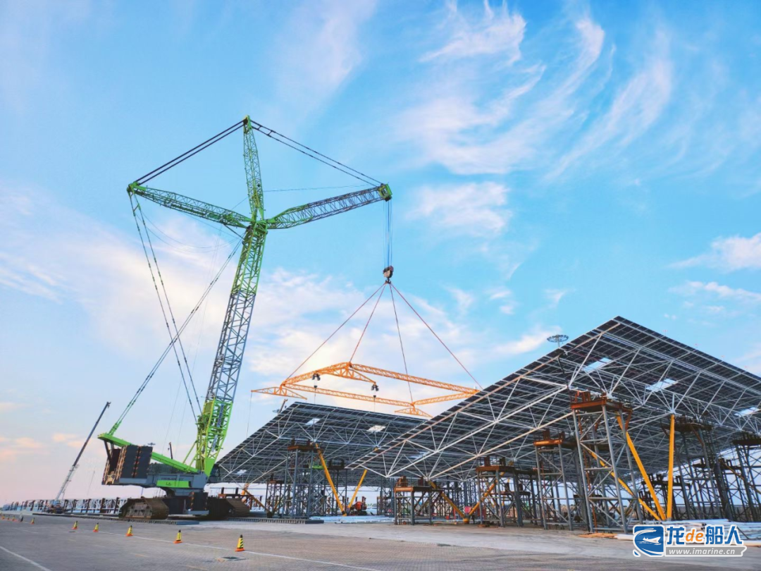 国华投资山东垦利100万千瓦海上光伏项目是我国目前最大开放海域海上光伏项目,项目用海面积约1223公顷。项目在全球率先采用大型海上钢桁架平台式固定桩基施工技术,安装了2934个光伏平台,单个平台长60米、宽35米。