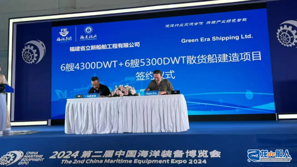 11月15日,福建省立新船舶工程有限公司在2024中国海洋装备博览会期间,与土耳其Green Era Shipping Ltd.签订6艘4300DWT和6艘5300DWT散货船建造合同。
