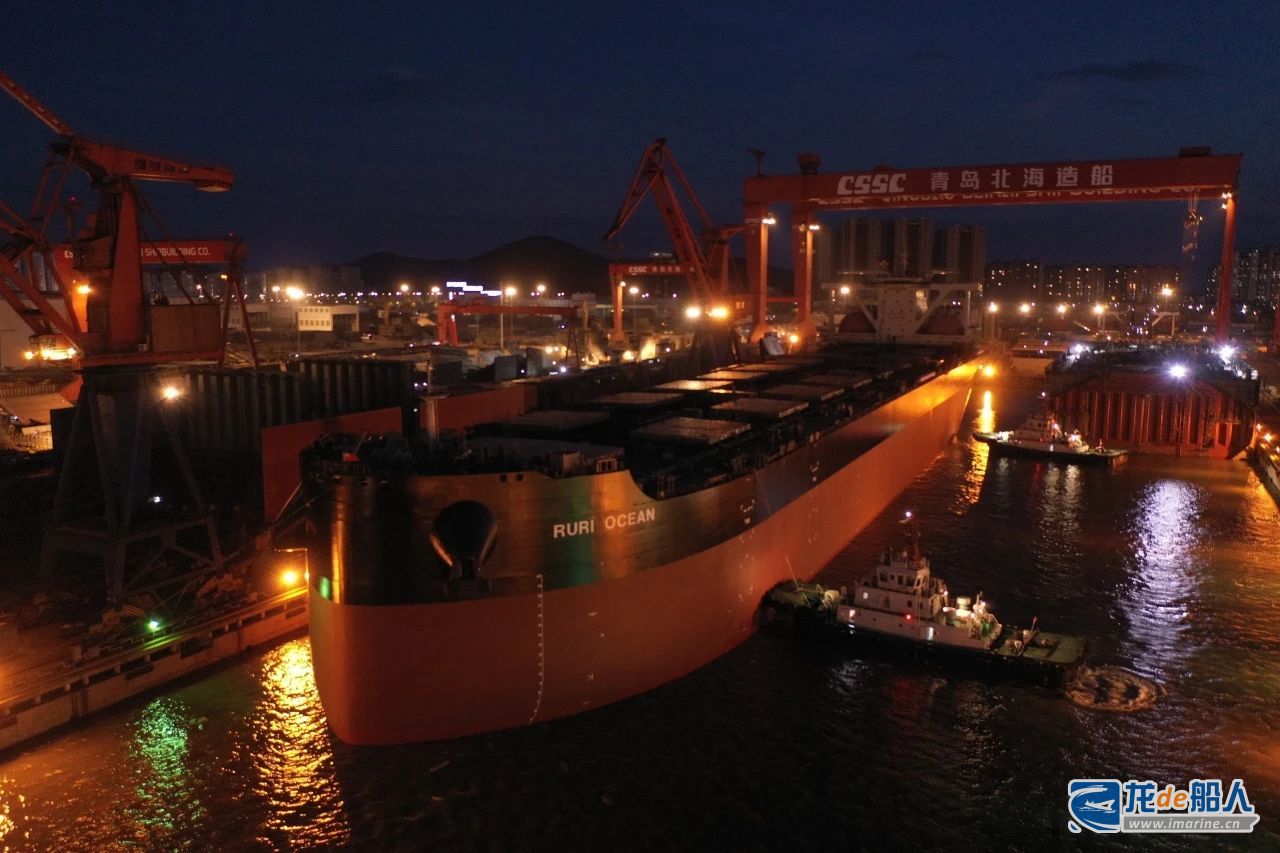 北海造船为比利时CMB公司建造的21万吨氨Ready散货船48号船顺利出坞。