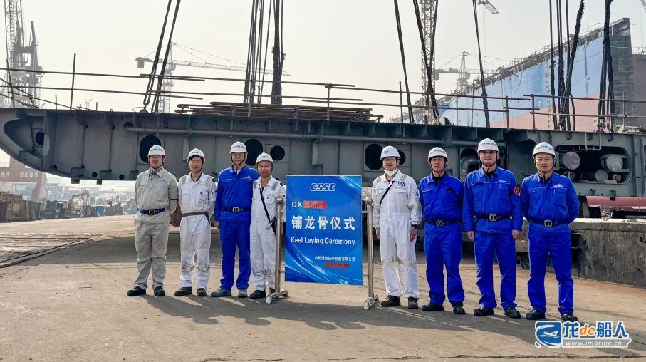 11月22日,同样为交银金租建造的14号62000吨重吊多用途船基准分段上船台搭载。