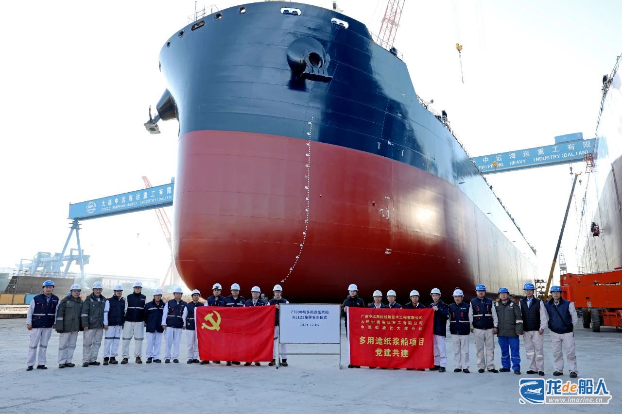 12月6日,大连中远海运重工系列多用途纸浆船项目同日实现一船开工、一船下水两大重要节点,系列船建造工程快速推进。